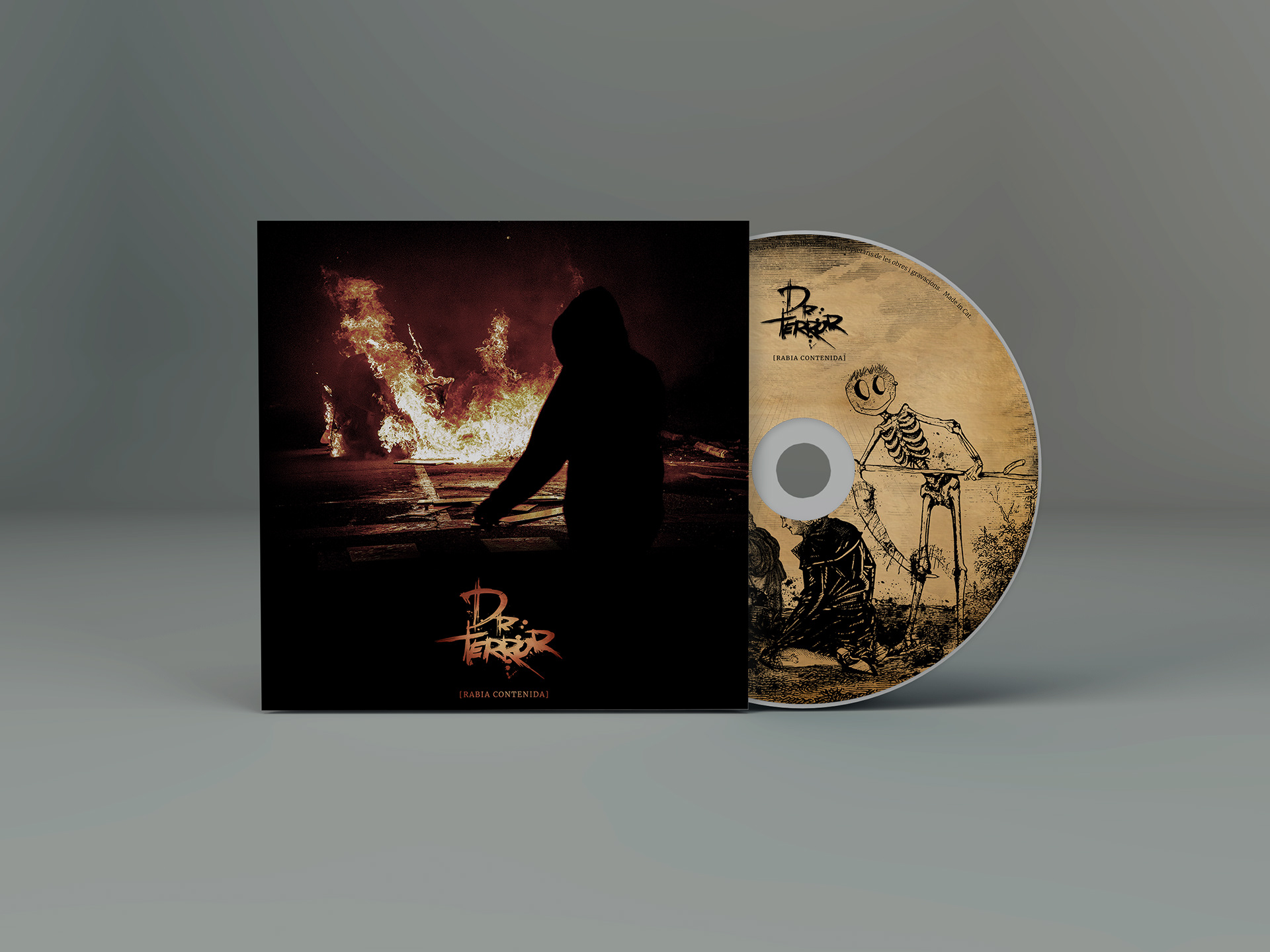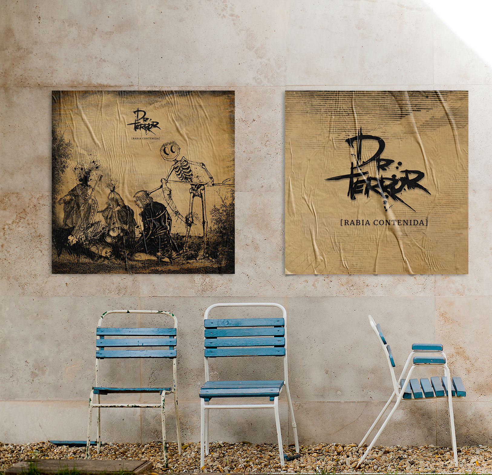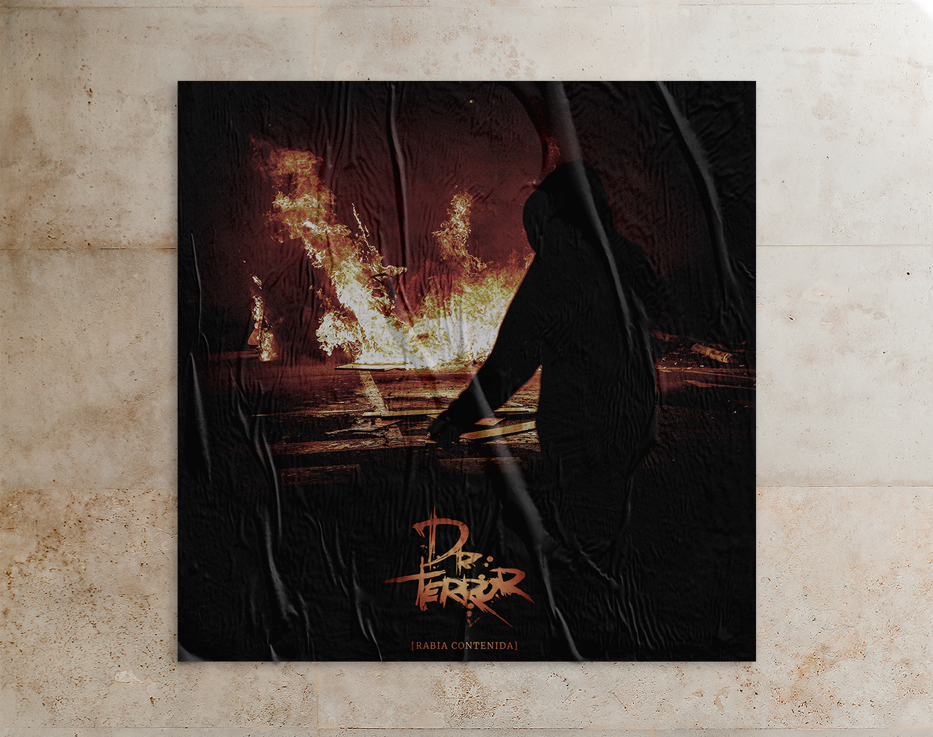 The visual identity of Dr. Terror – Rabia Contenida arises from the friction between raw anger and cultural memory. At its core stands the figure of the skeleton, a timeless reminder of decay and resistance, drawn with the expressive force of etching and the texture of worn-out posters. This symbol is juxtaposed with the immediacy of fire and protest, merging past allegories with contemporary unrest.