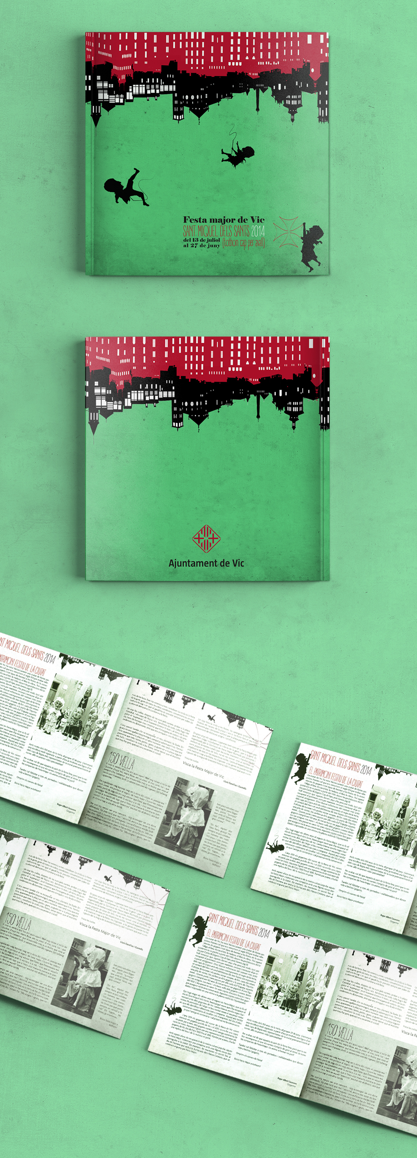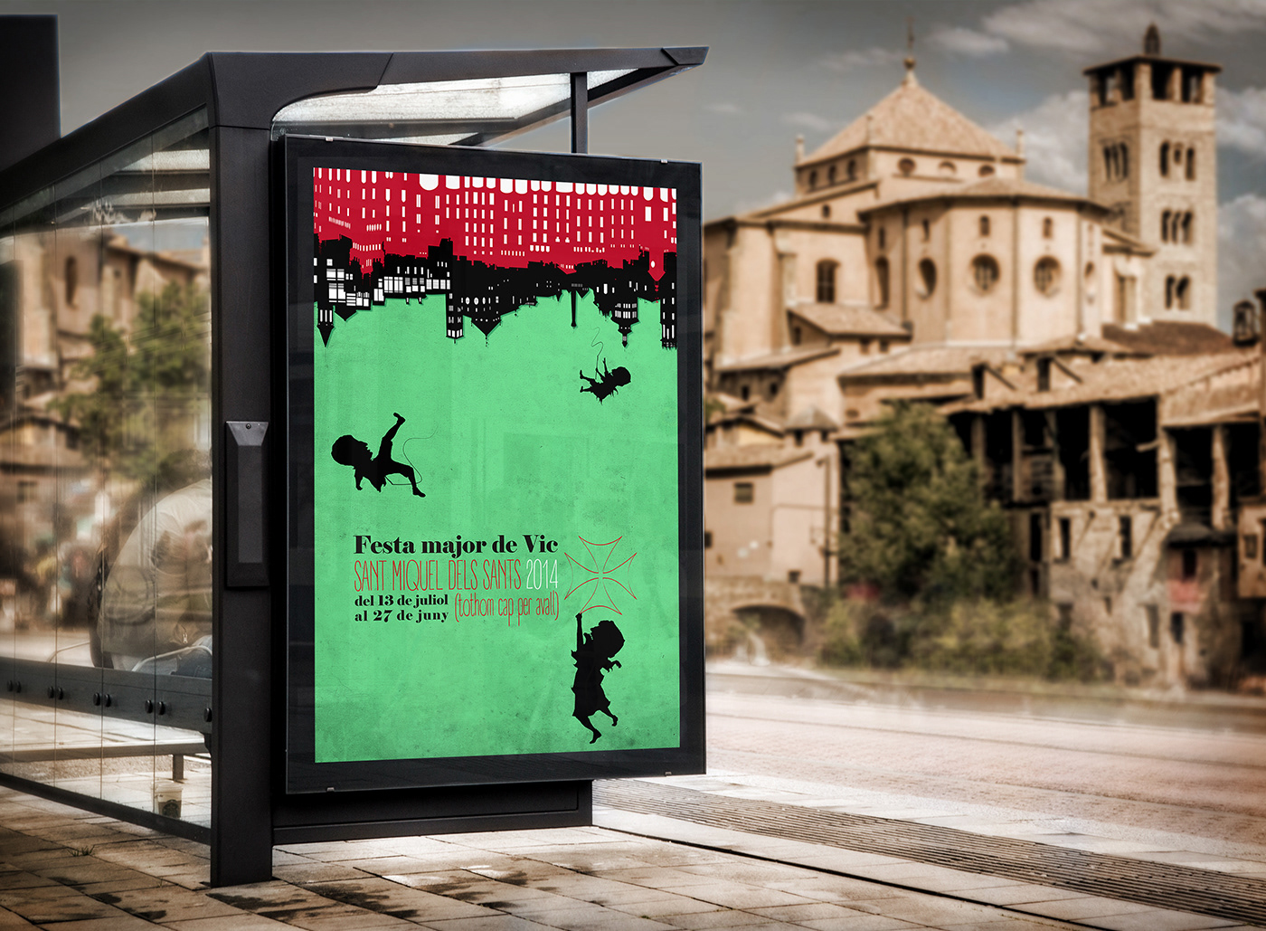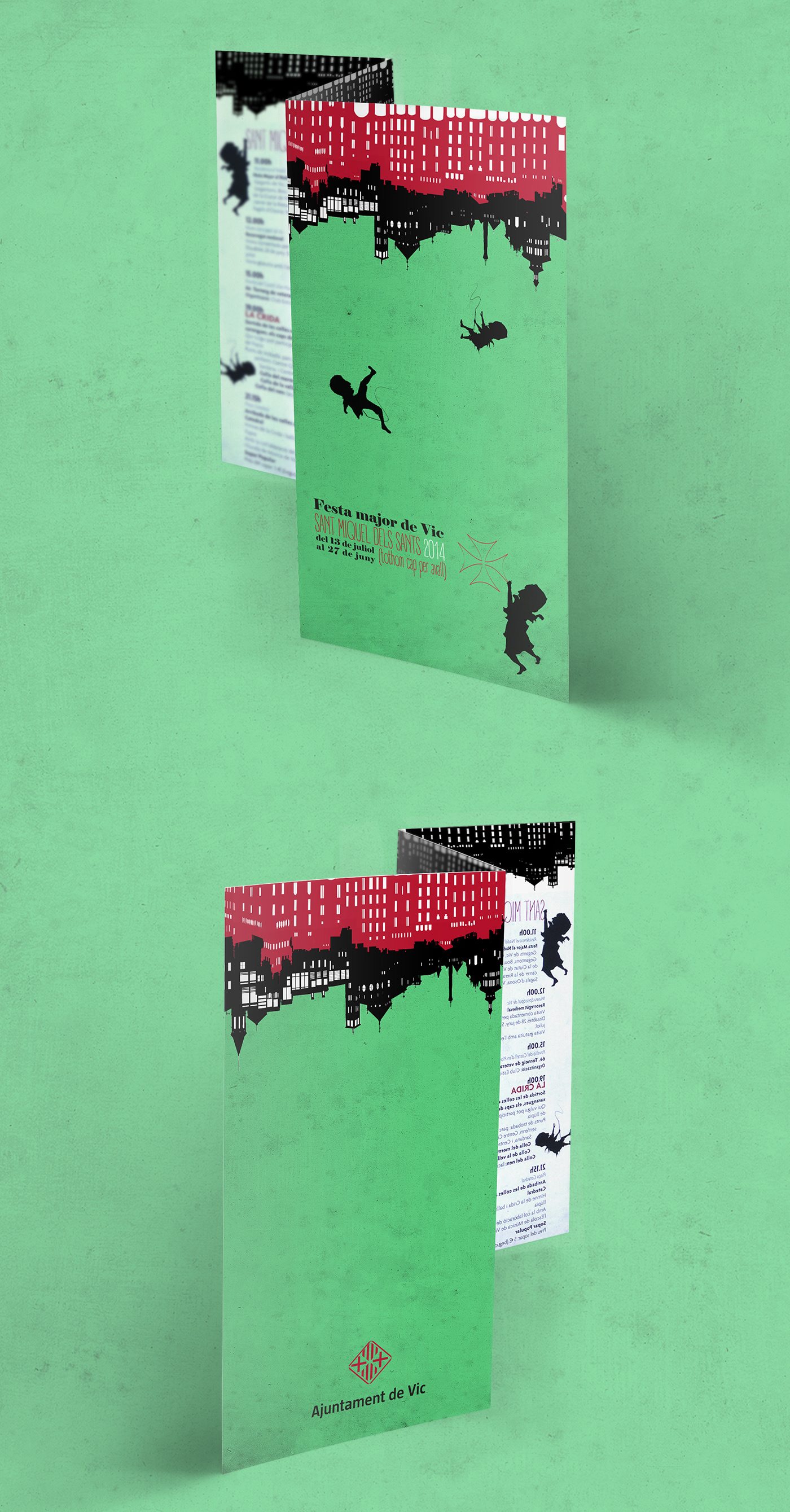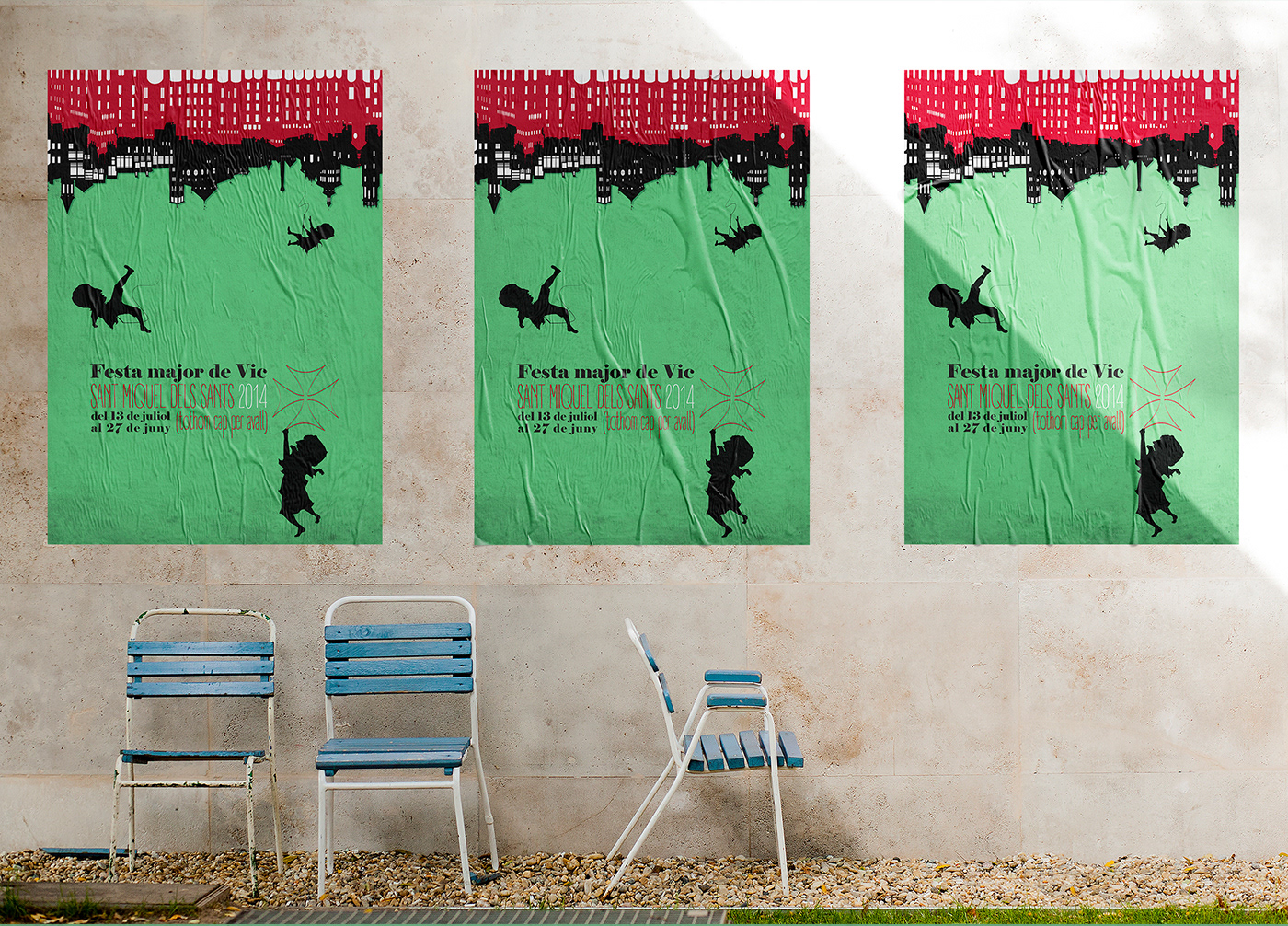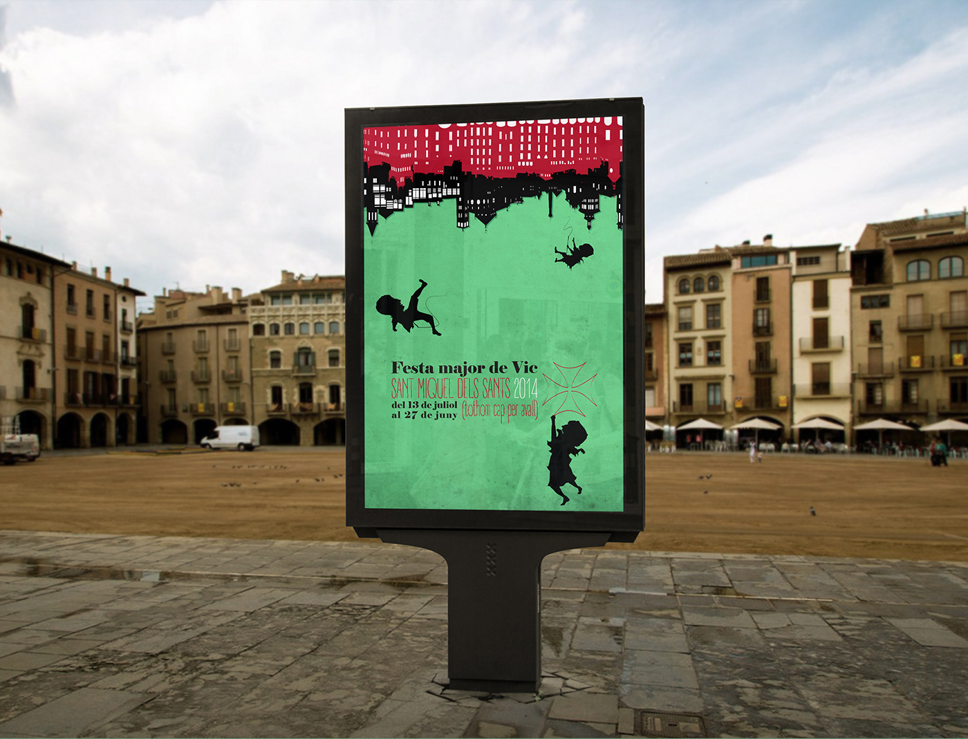 The visual proposal created for the Festes de Sant Miquel dels Sants in the city of Vic in 2014 is built around a central idea: the festive madness that turns the city upside down. During these days nothing remains static; everything moves, everything spins, and even the most ordinary elements become metaphors of joyful, collective disorder.
