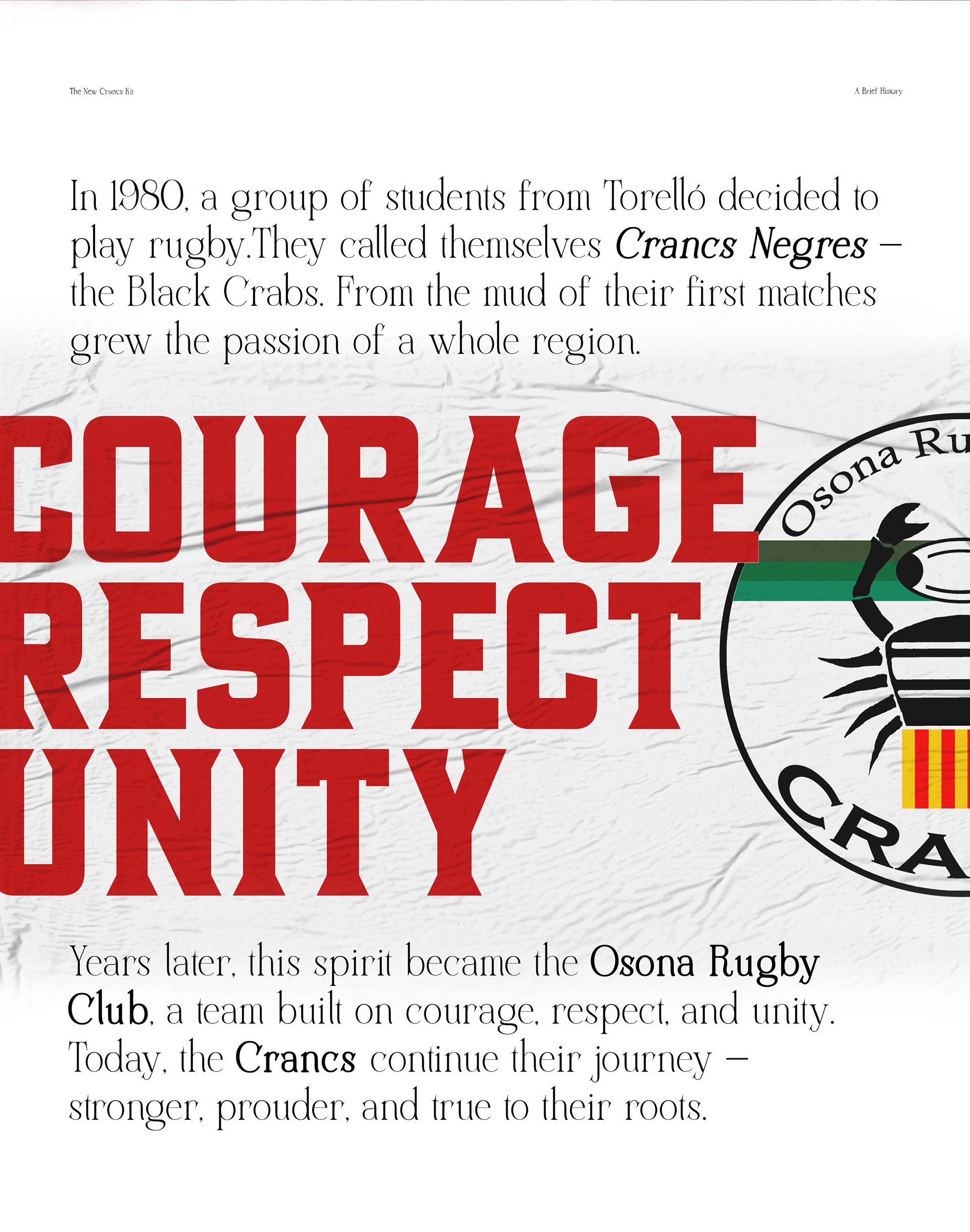 The new Crancs rugby kit is born from a deep respect for the club’s history and for the sporting tradition of Osona. From the early matches played in mud and cold grass to the growth of a community built on teamwork and resilience, the Crancs have always embodied the strength of a territory shaped by unity and perseverance.